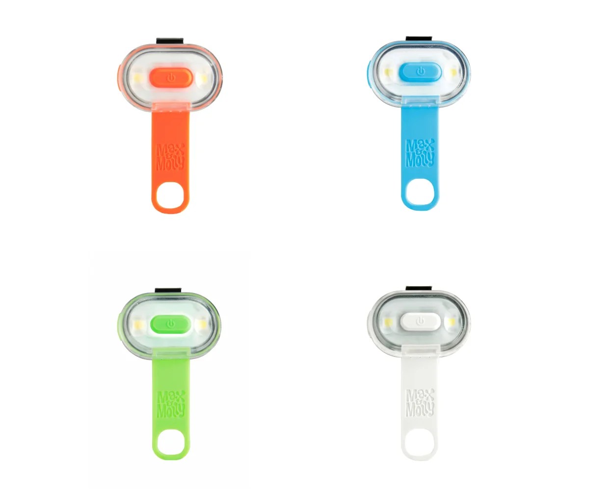 Most clip-on dog lights use a carabiner-like mechanism to attach to a dog’s collar. They work well most of the time, but we were impressed by the sleek design, smart functionality and quality-build of the Maxy & Molly Matrix Ultra LED.